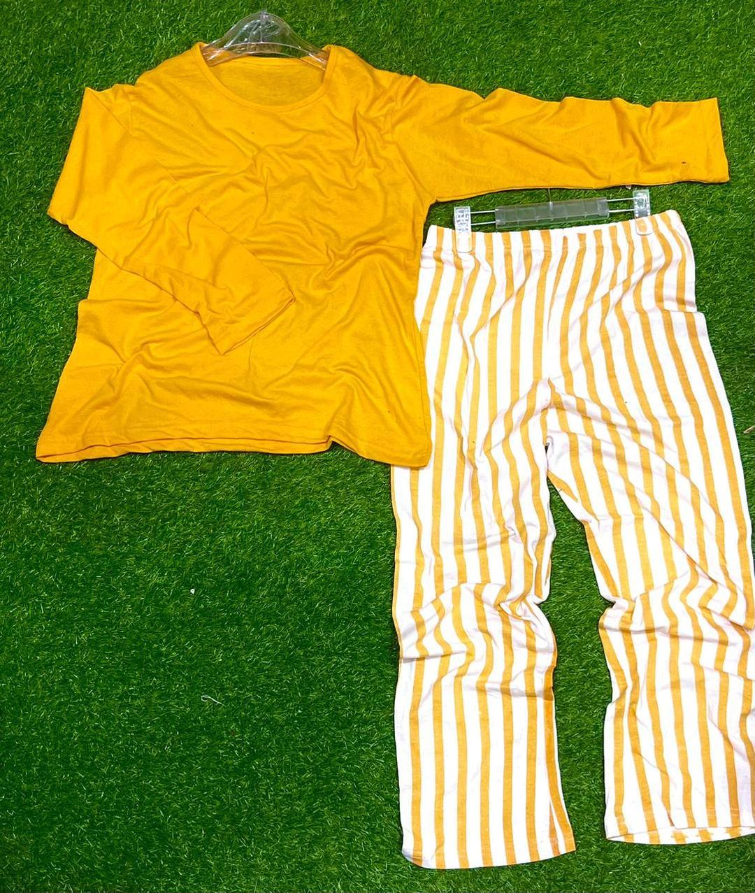 • Shirt Fabric: Cotton Jersey• Pattern: Printed• Neck Type: Round Neck• Available Sizes: Standard Size• Number Of Pieces: 2 Pcs• Package Includes: 1 x Sleep Shirt, 1 x Sleep Trouser• Shirt Length: 27 Inches• Shirt Chest: 21 Inches• Shirt Shoulder: 18 Inches• Arm Length: 22 Inches• Trouser Length: 38 Inches• Trouser Waist: 32 Inches• Trouser Hip: 16 Inches• Color: Yellow
